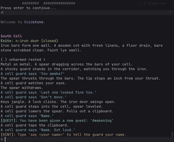 System: help (?), quest, hint, prompt, colors, save, load, quit
